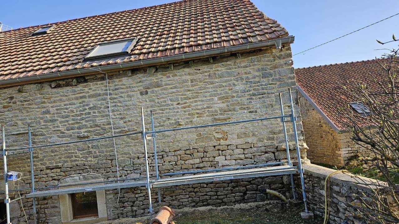 Rénovation murs en pierre, façades, ouvertures et aménagement extérieur.